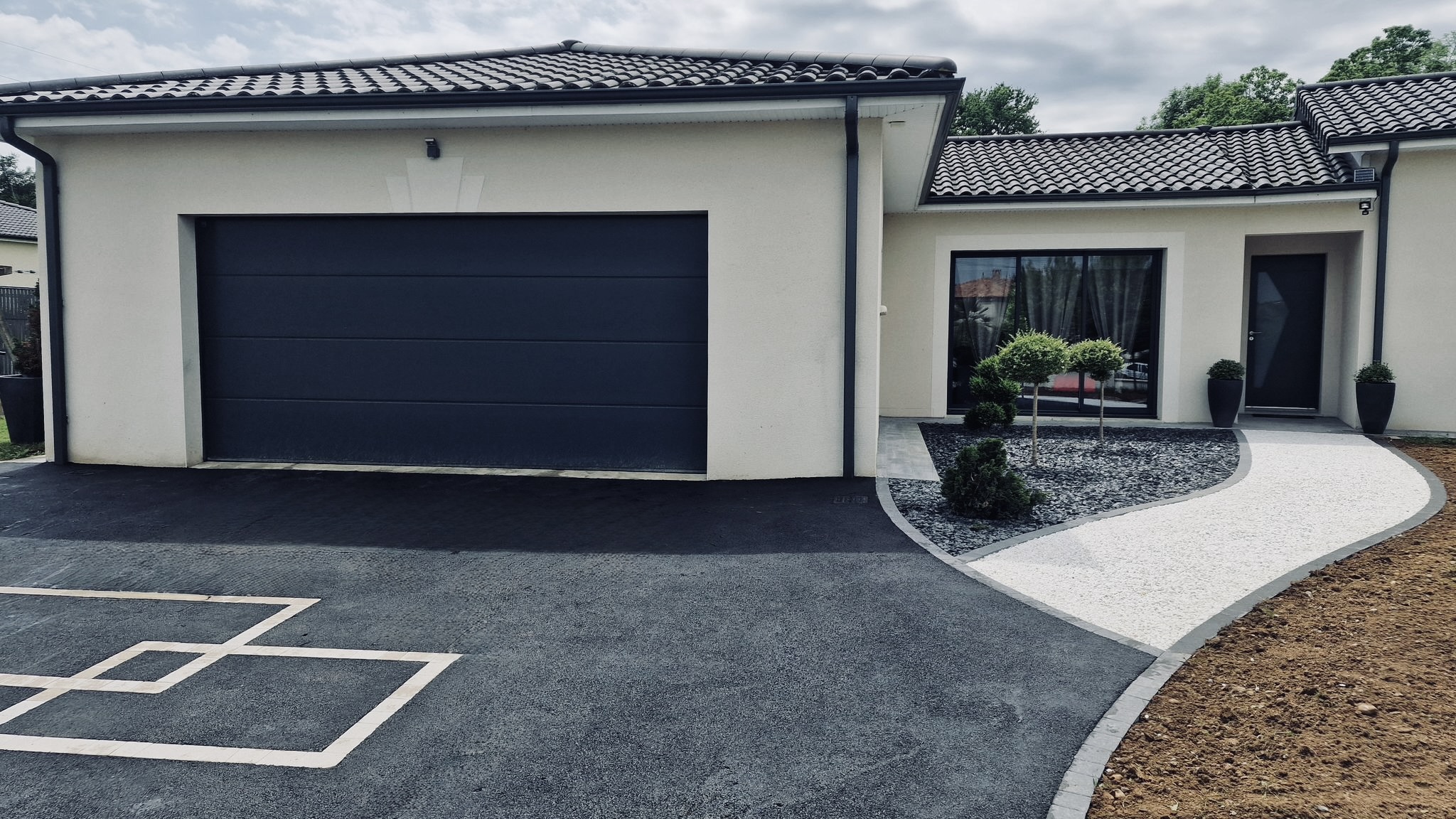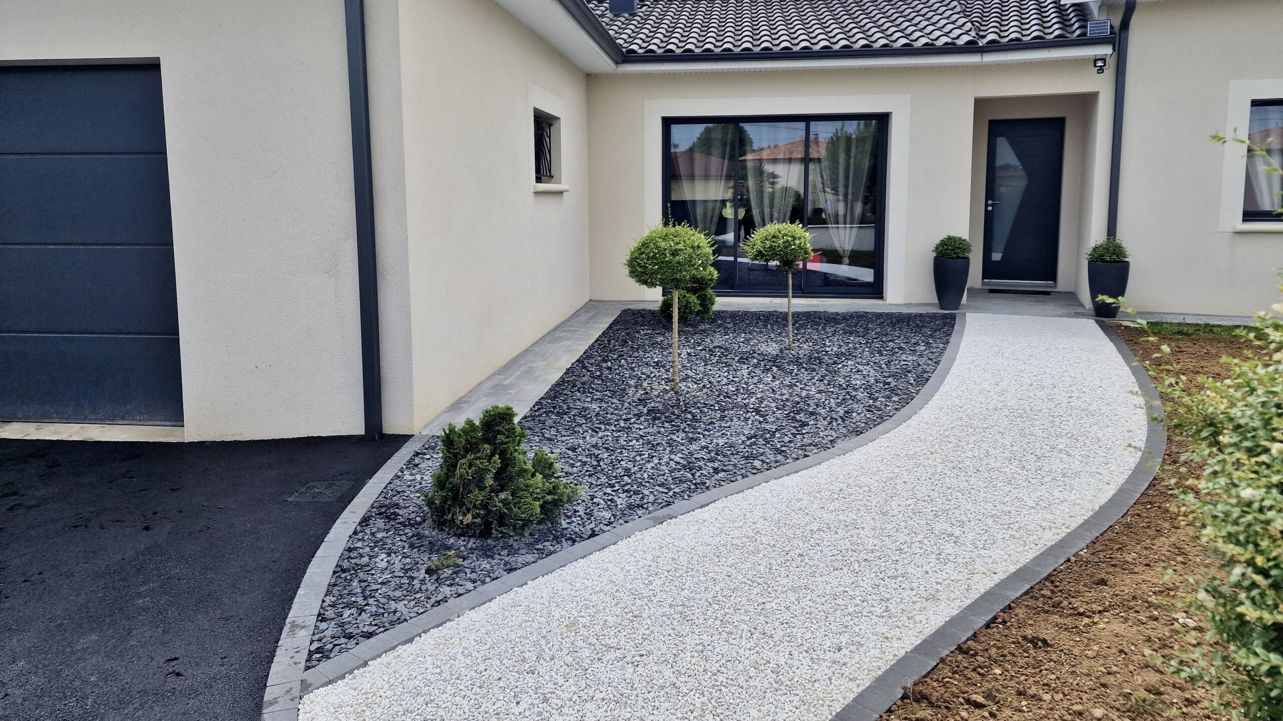 Selon vos envies et le style de votre maison, plusieurs revêtements sont possibles : enrobé, béton désactivé ou alvéoles remplies de gravier de qualité.